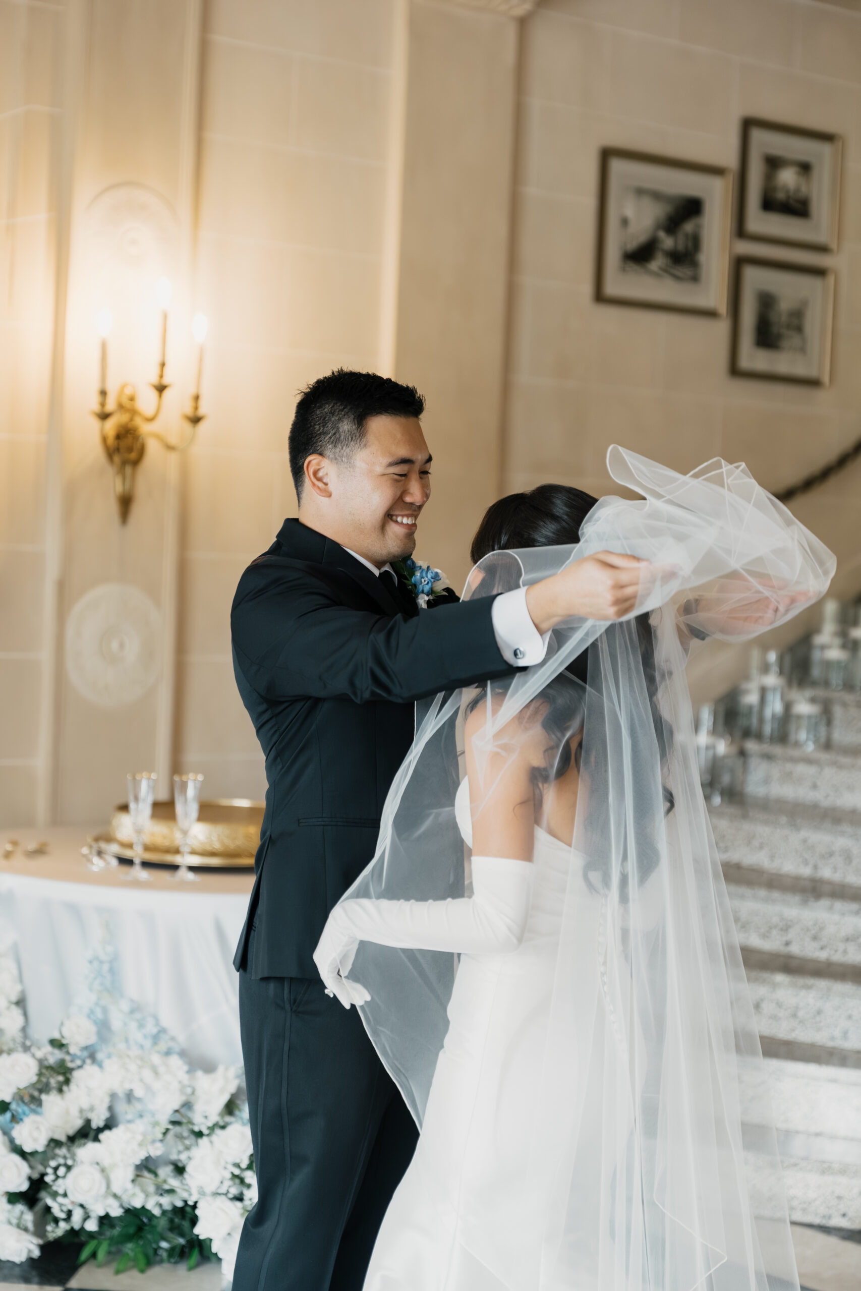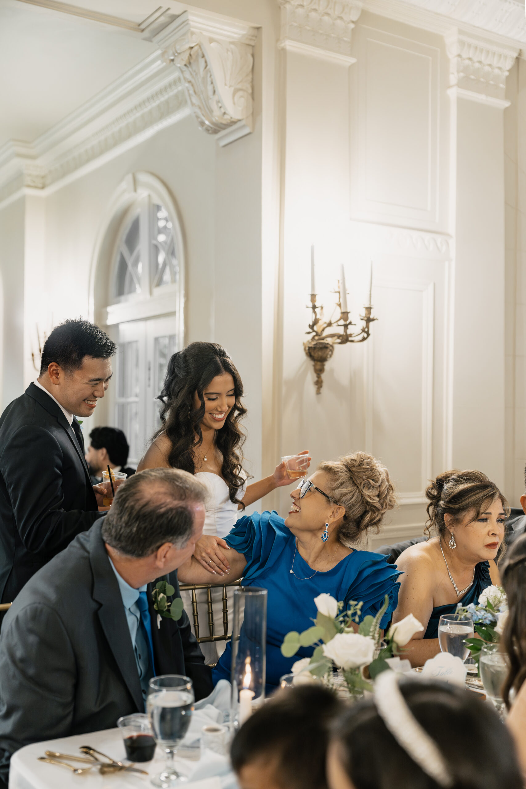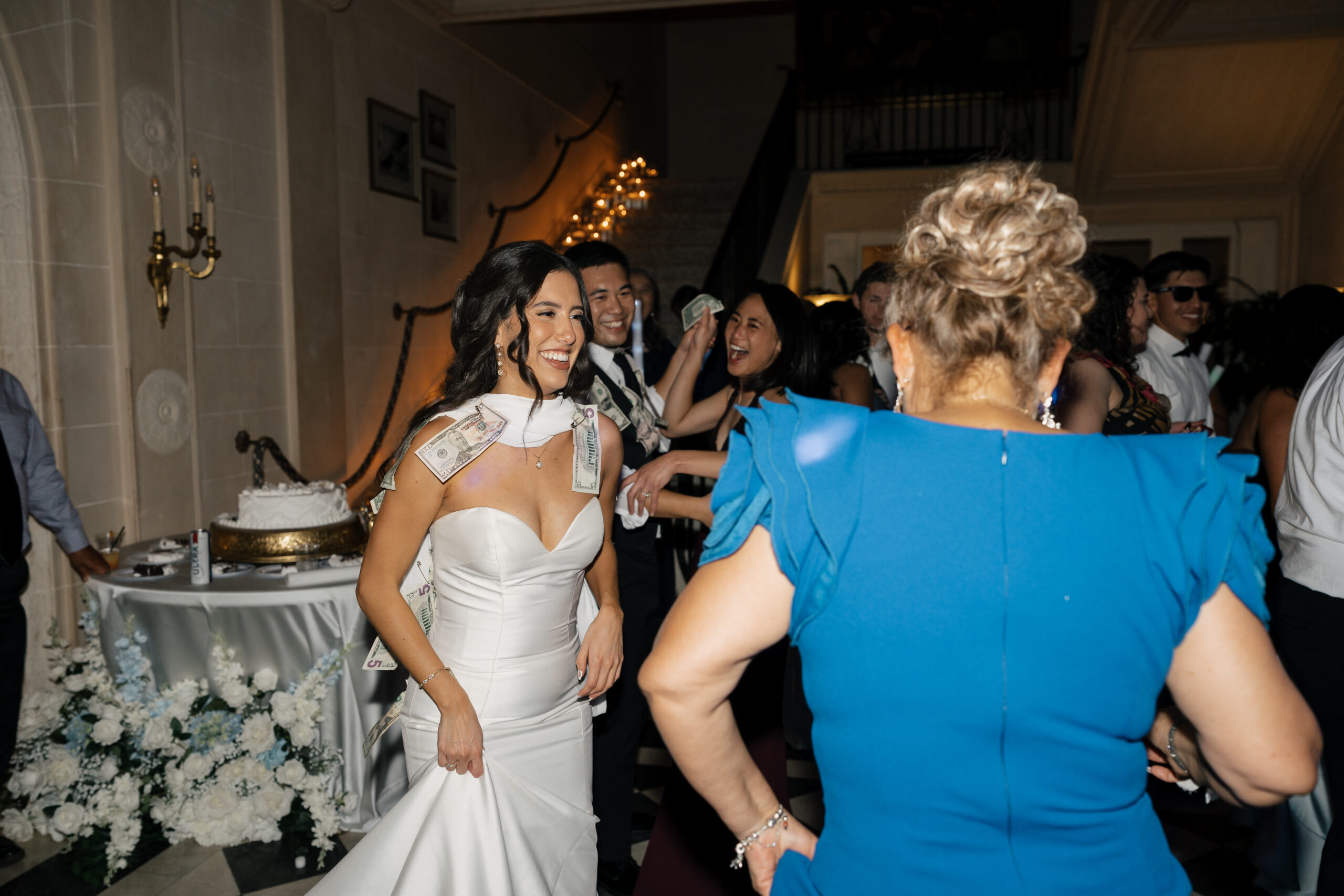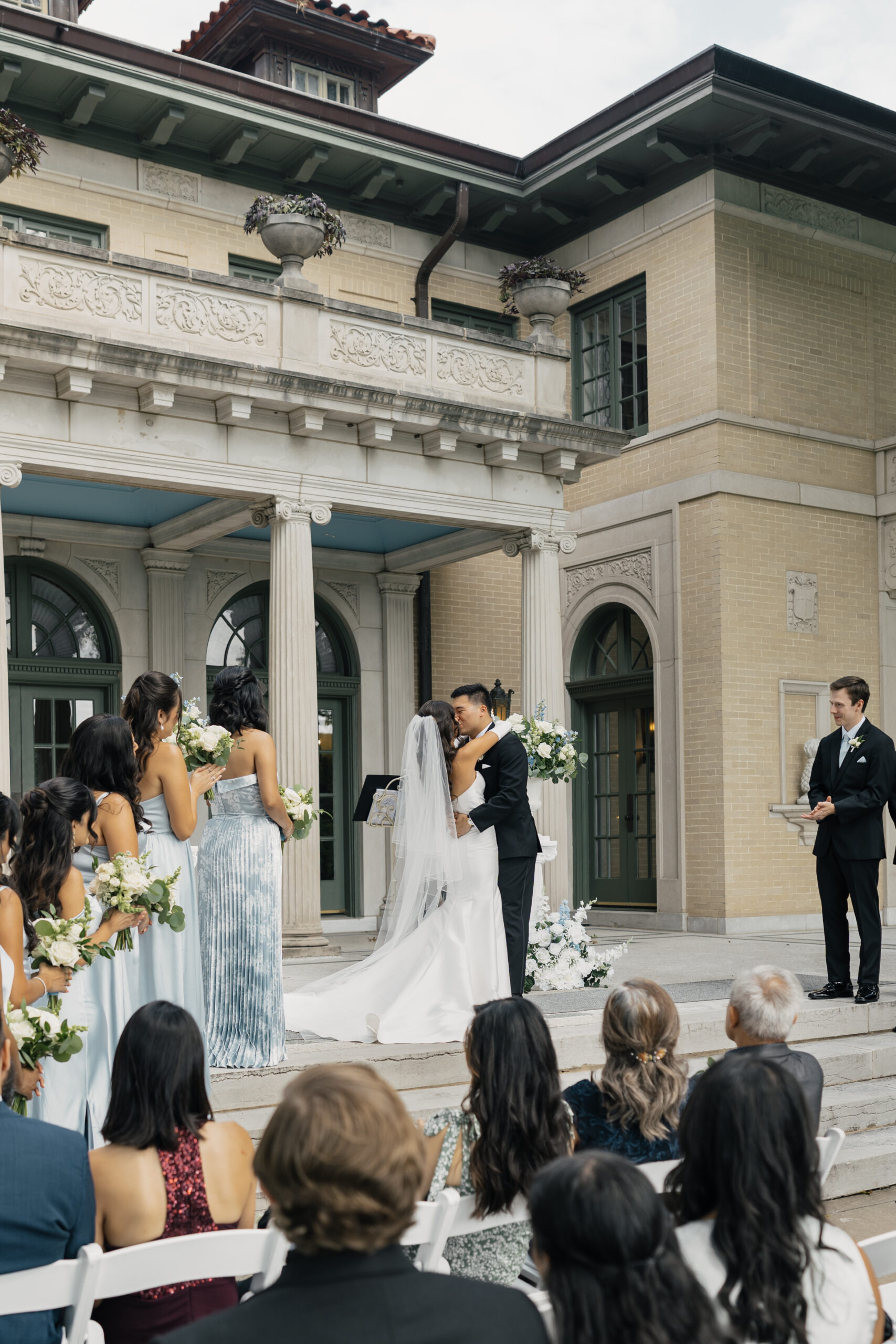 Their color palette of light blues, whites, and greenery paired perfectly with the mansion’s vintage aesthetic. Emotional highlights included a joyful door game, their heartfelt tea ceremony, a stunning reception reveal, and the most vibrant money dance that had every guest smiling and cheering.