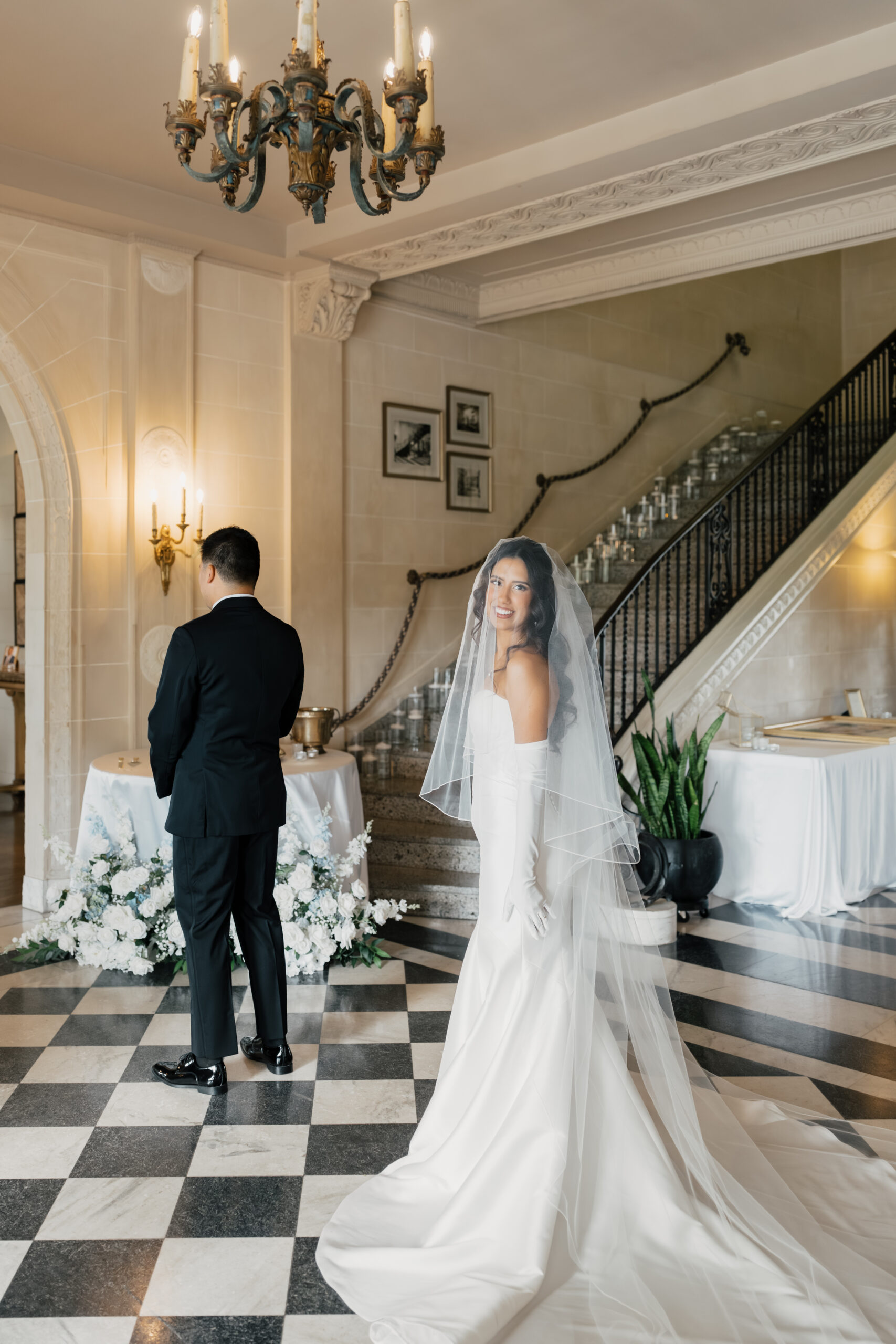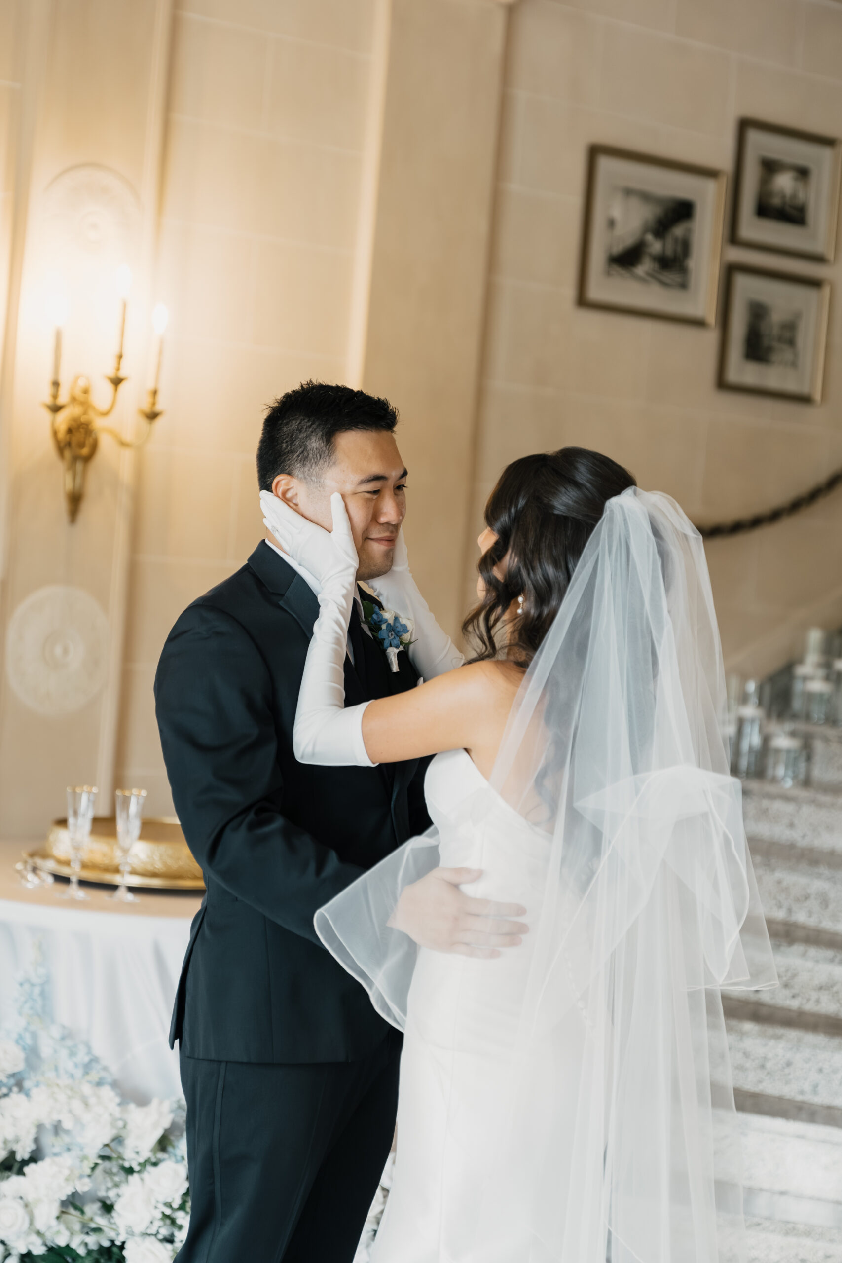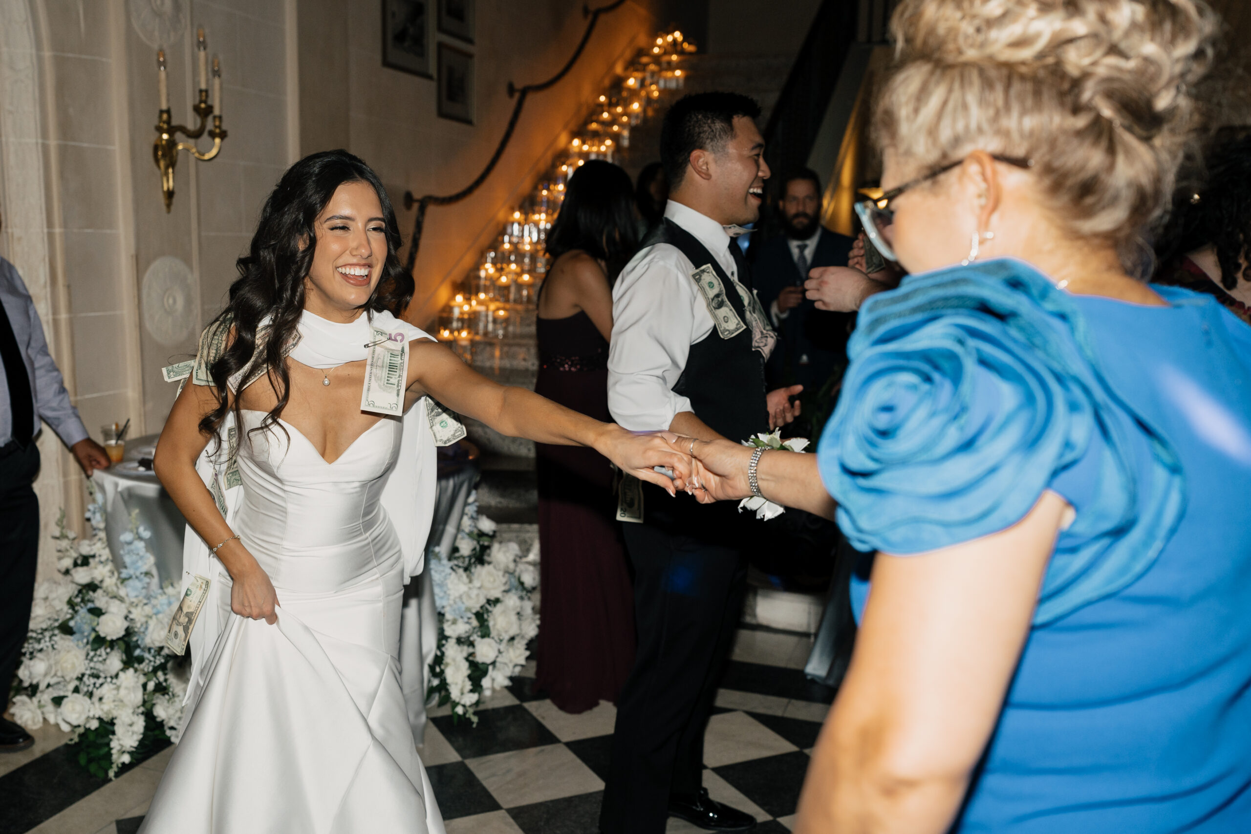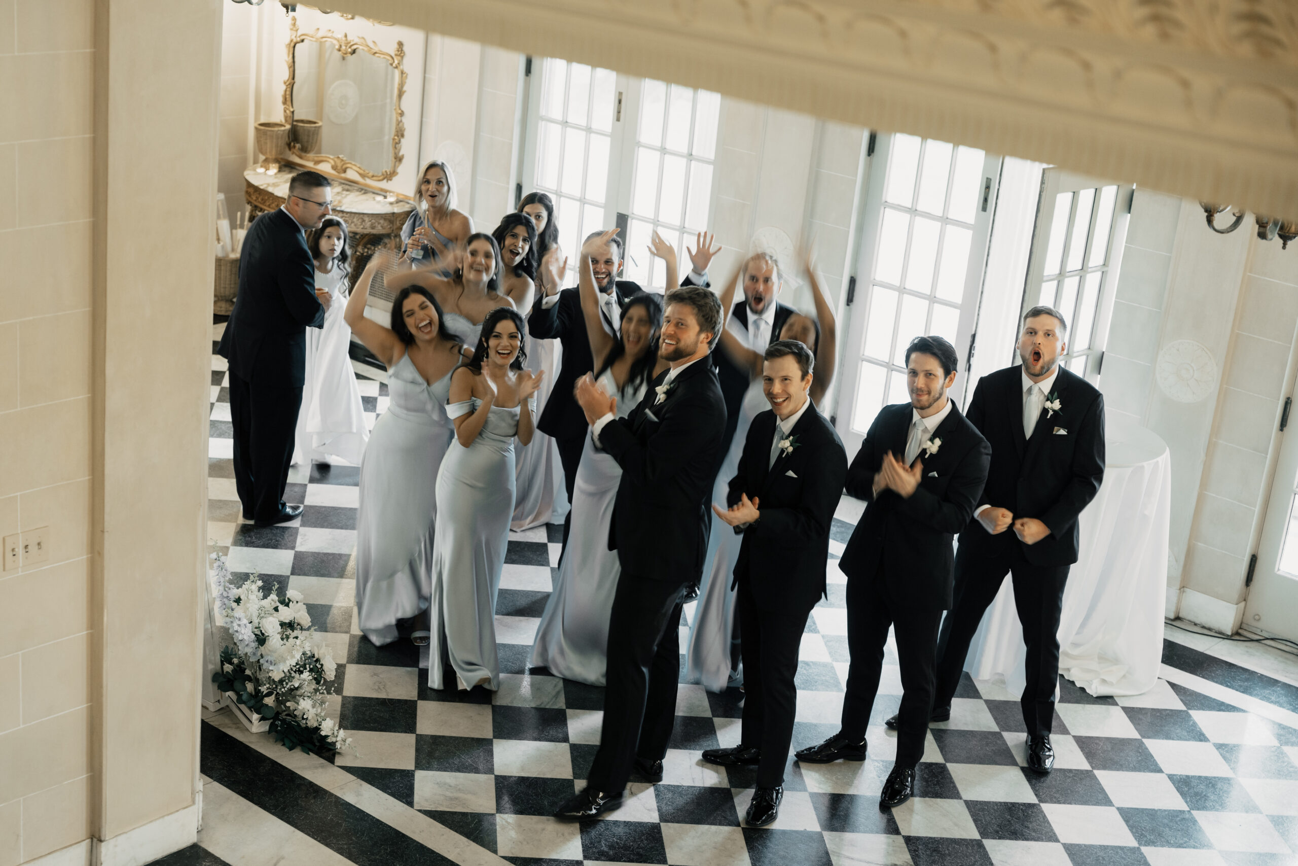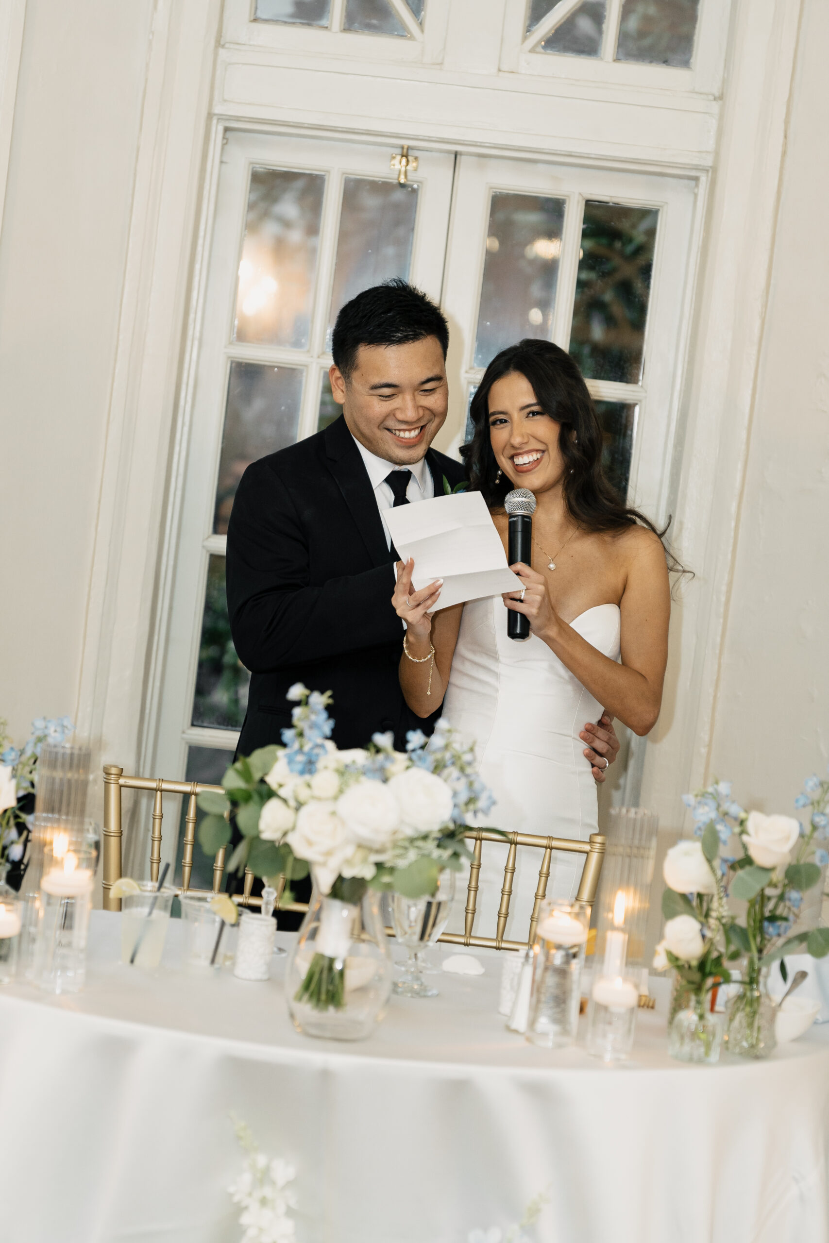 Their color palette of light blues, whites, and greenery paired perfectly with the mansion’s vintage aesthetic. Emotional highlights included a joyful door game, their heartfelt tea ceremony, a stunning reception reveal, and the most vibrant money dance that had every guest smiling and cheering.