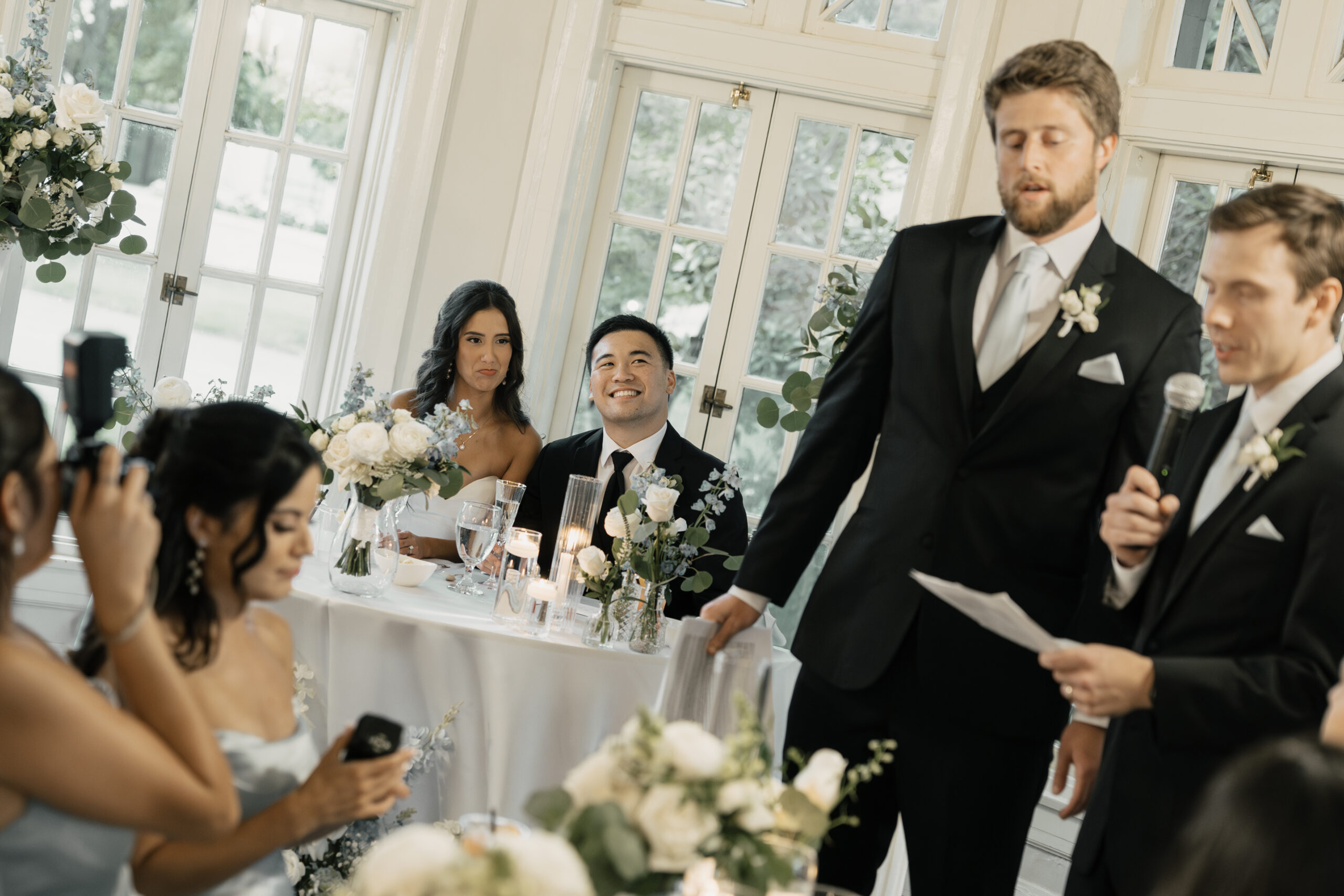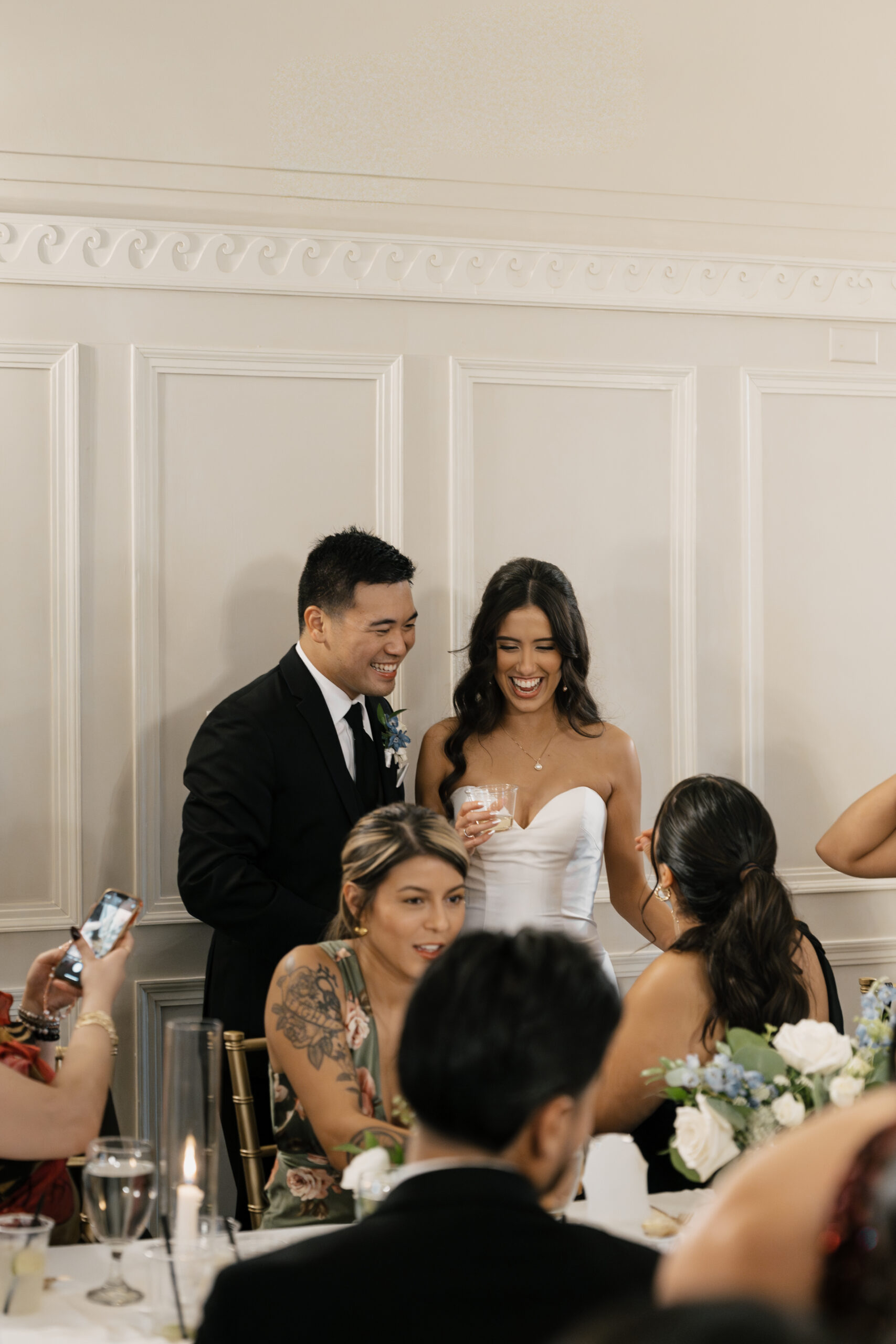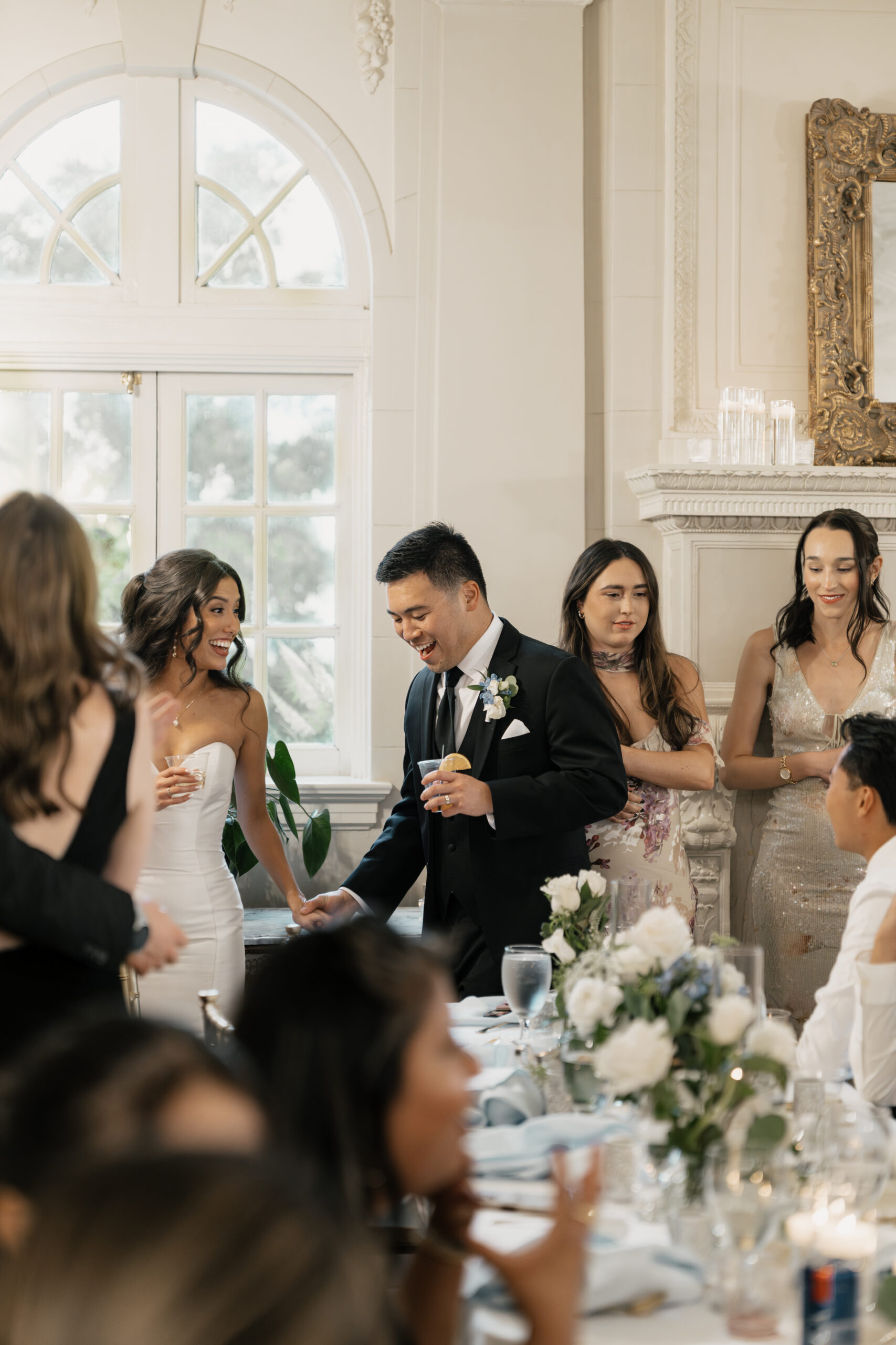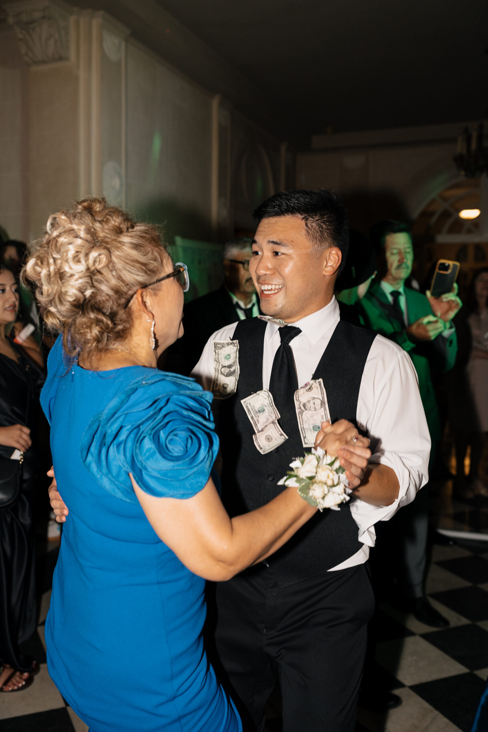 Their color palette of light blues, whites, and greenery paired perfectly with the mansion’s vintage aesthetic. Emotional highlights included a joyful door game, their heartfelt tea ceremony, a stunning reception reveal, and the most vibrant money dance that had every guest smiling and cheering.