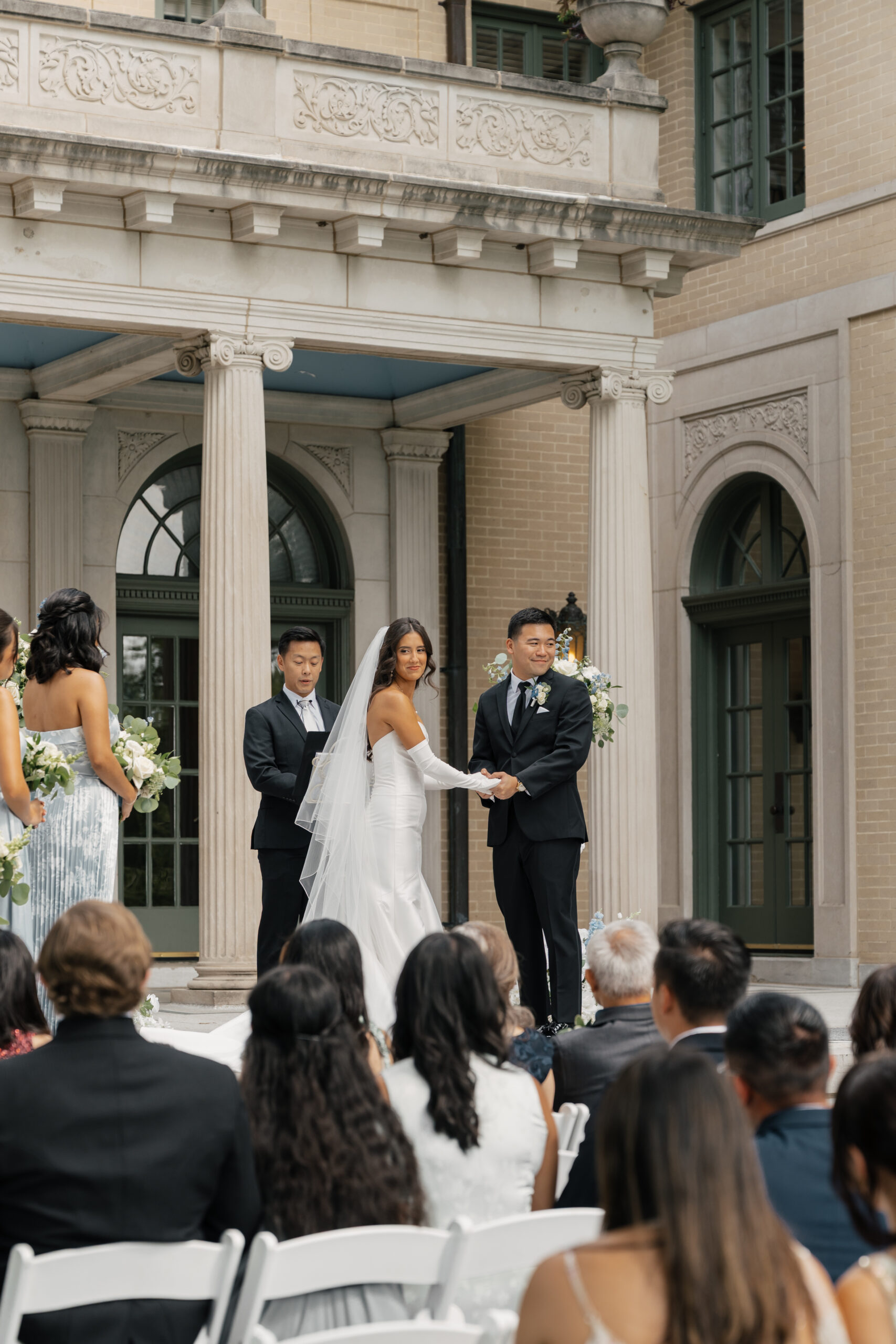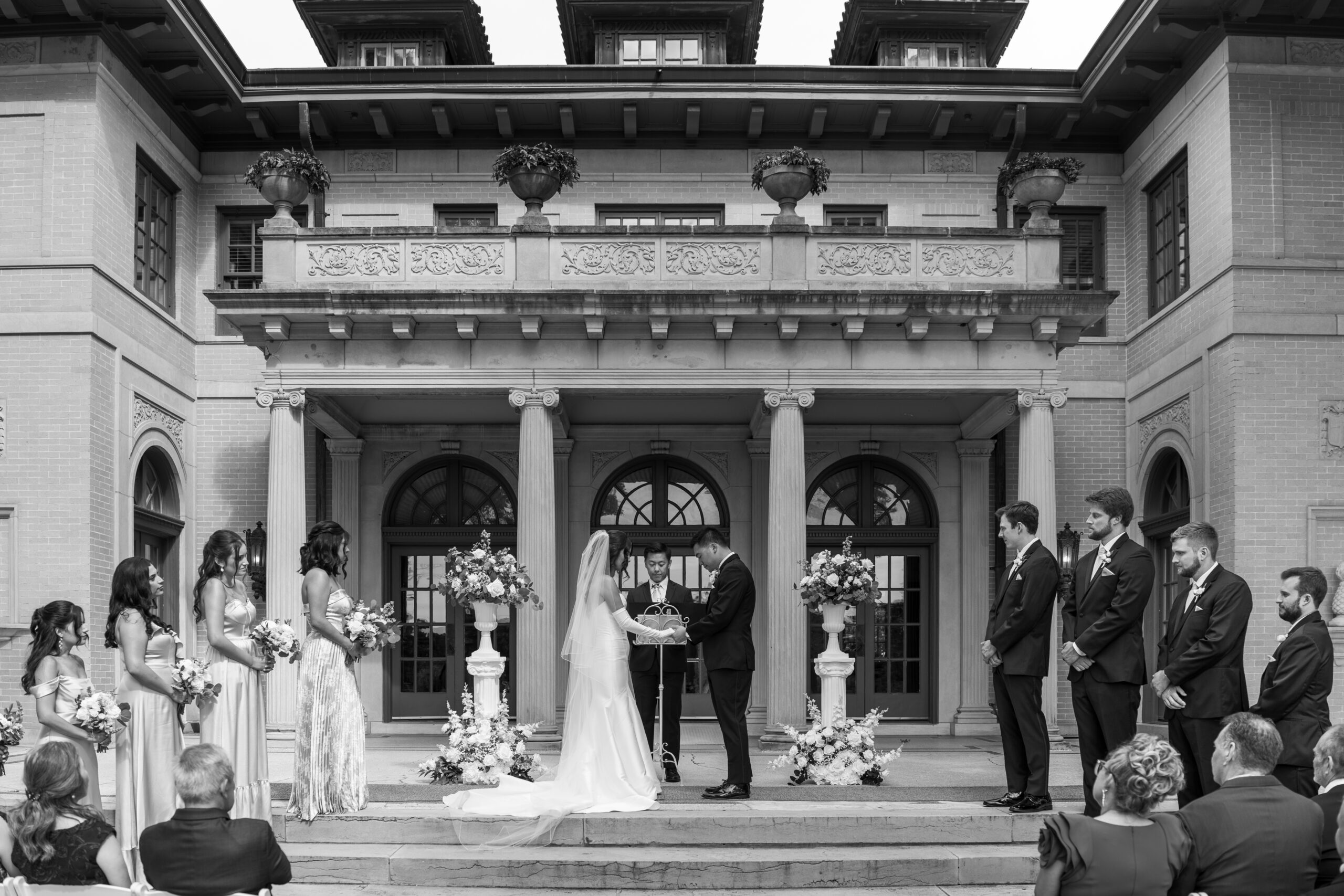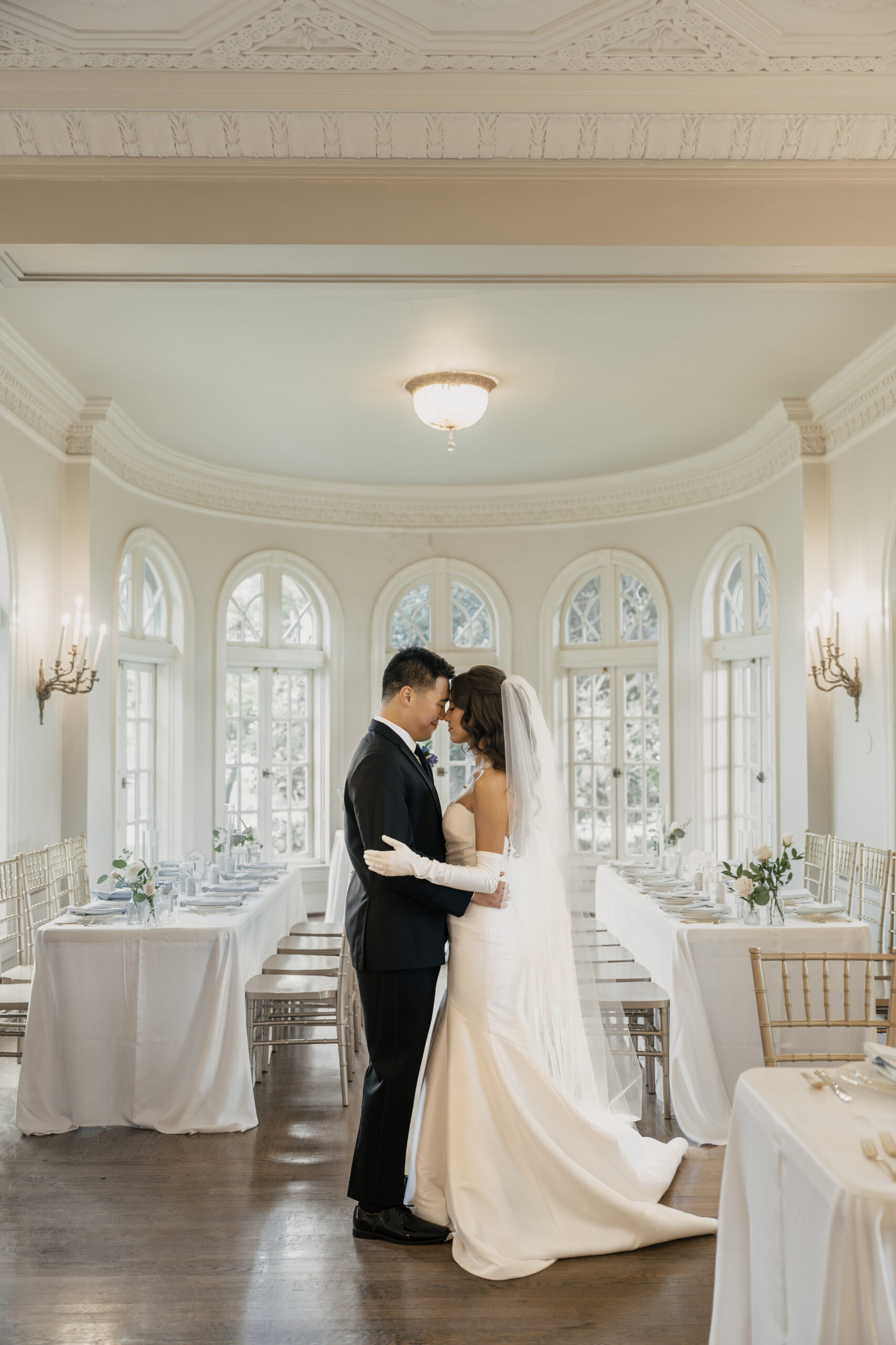The gardens offer multiple ceremony spots—from floral-lined walkways to sunlit corners under towering trees—each creating a peaceful, storybook-like atmosphere. Whether it’s just the two of you or a small group of family and friends, the mansion grounds provide a timeless backdrop that feels both private and beautifully cinematic.