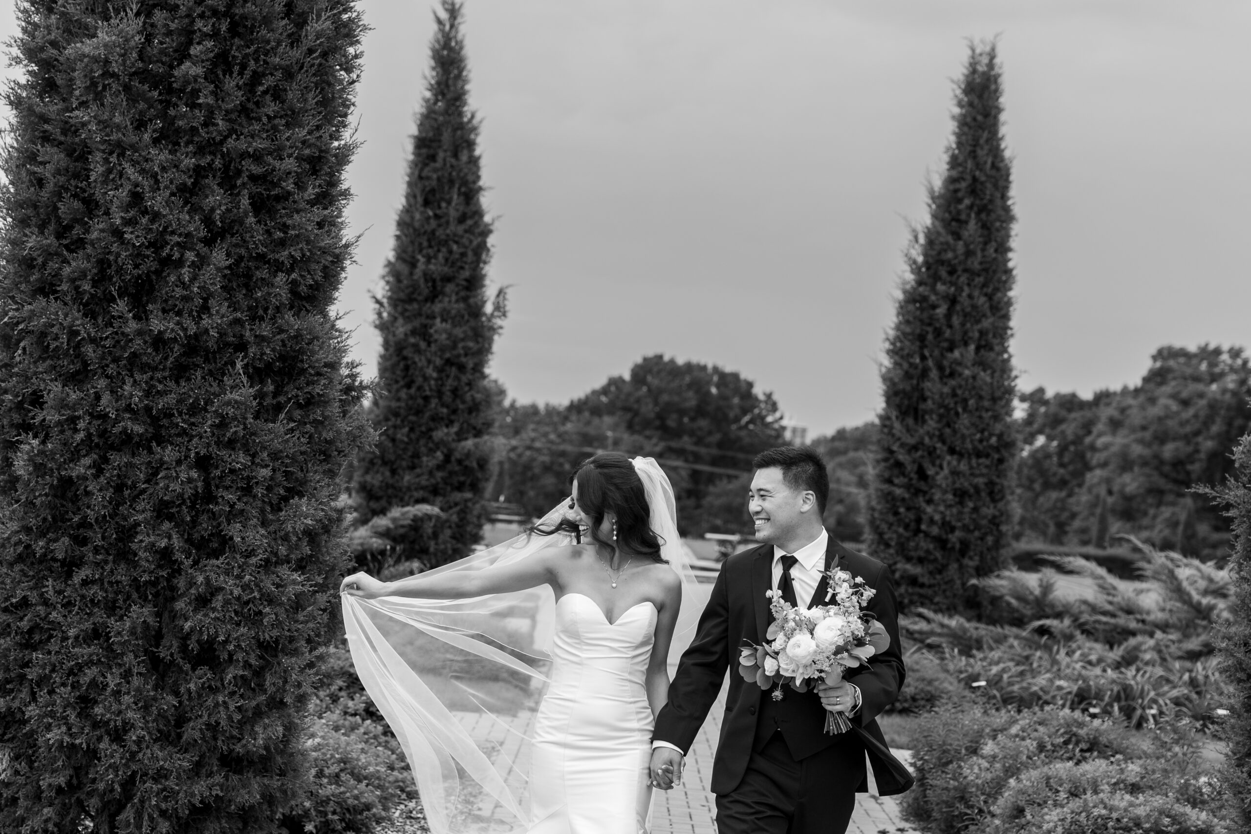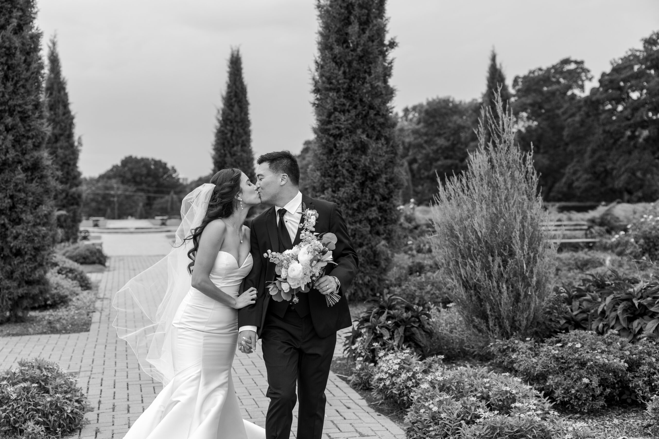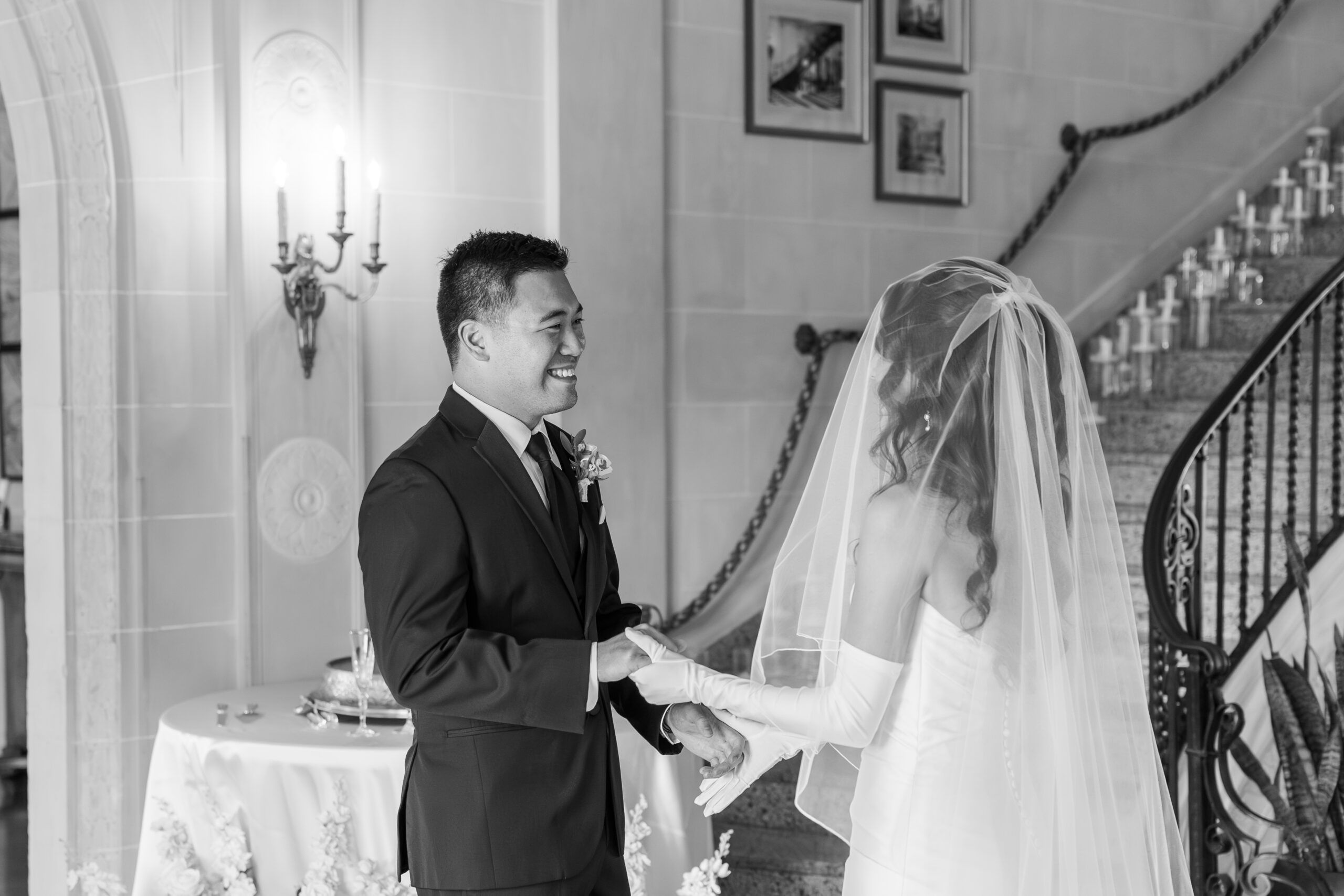 The gardens offer multiple ceremony spots—from floral-lined walkways to sunlit corners under towering trees—each creating a peaceful, storybook-like atmosphere. Whether it’s just the two of you or a small group of family and friends, the mansion grounds provide a timeless backdrop that feels both private and beautifully cinematic.
